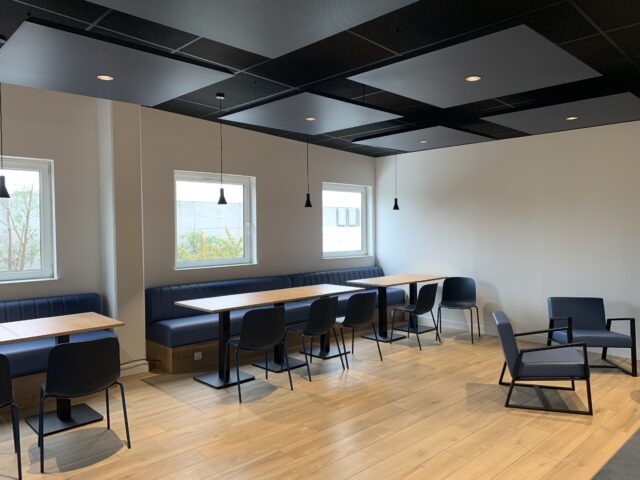 Modernity, design, acoustic comfort… we’re finally equipped with our metal ceilings and partitions.